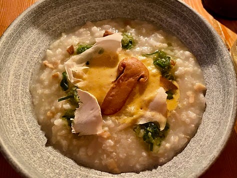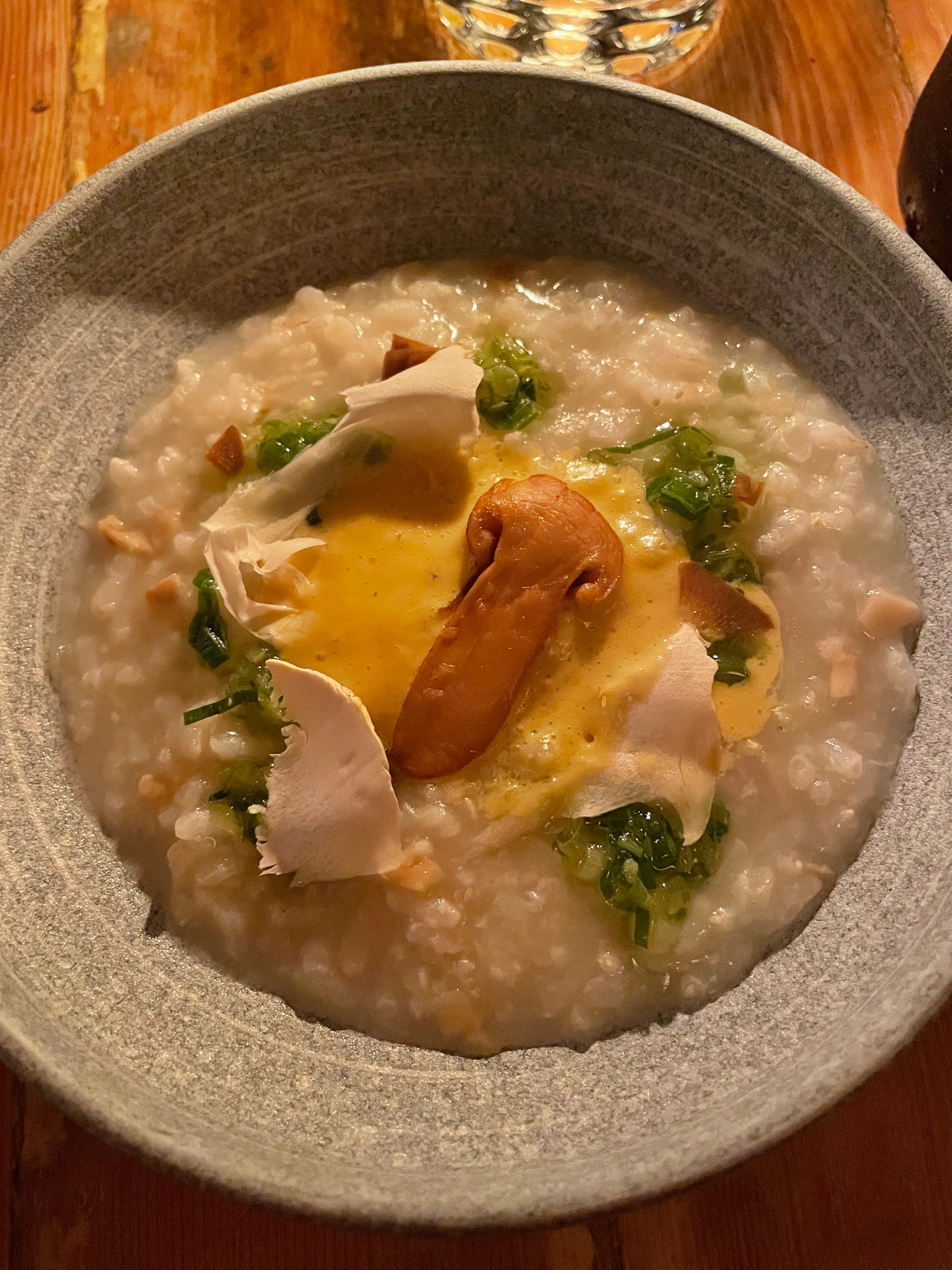 The first time I had congee at Burdock & Co. was three years ago, flavoured with pine mushrooms, some cooked and some thinly shaved raw. So memorable!