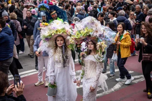 What I love about these bonnets and outfits is how fantastic they are, bold with colour and fantastical in how they turned out! These New Yorkers really go all out, and are willing to step out and show off their artistic side.