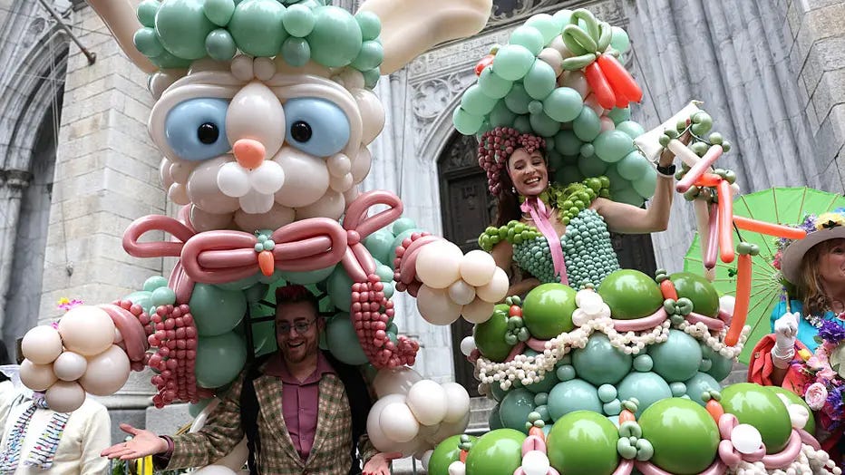 Many wear hats covered in flowers, bunny rabbits, Easter eggs and complete the look with matching outfits, like colourful suits, dresses, or this year in balloons.