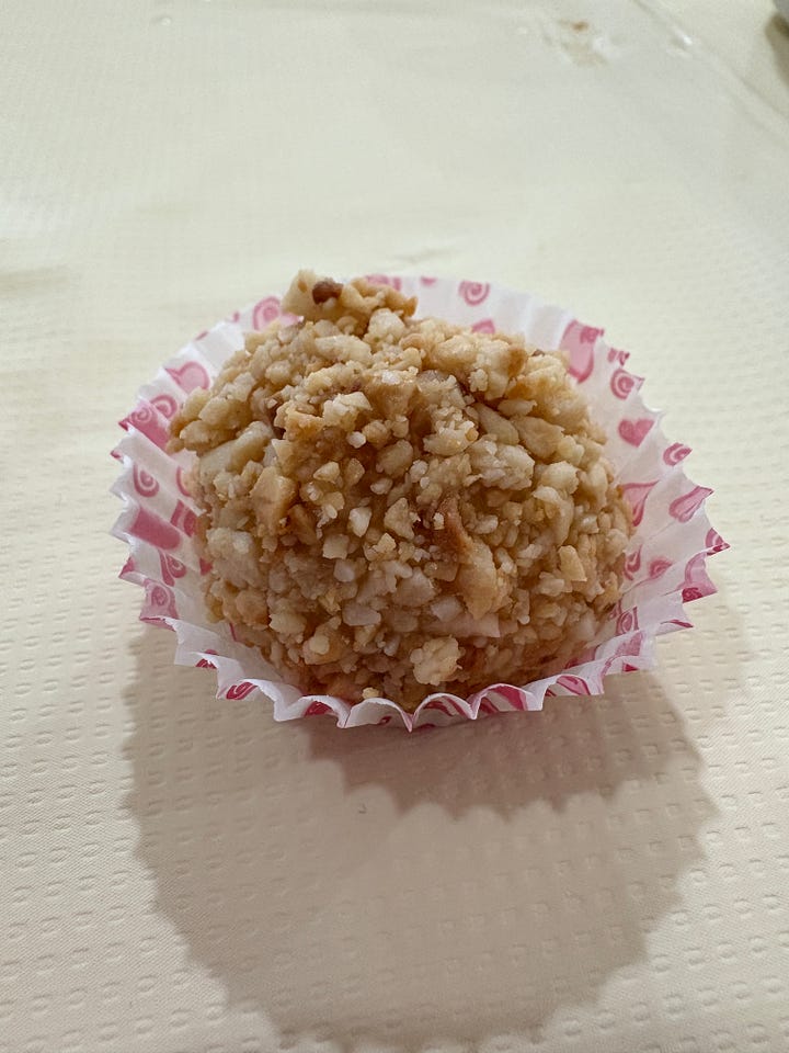 For dessert, something a bit unusual -- black sesame glutinous rice balls that were studded with crushed peanuts.