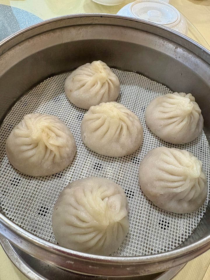 Xiaolongbao is usually a good test. With eight of us we ordered two servings (five xiaolongbao each) and they came freshly steamed. Picking it up with chopsticks, the dumpling looked good, the skin practically see-through as you can easily see a lot of soup inside.