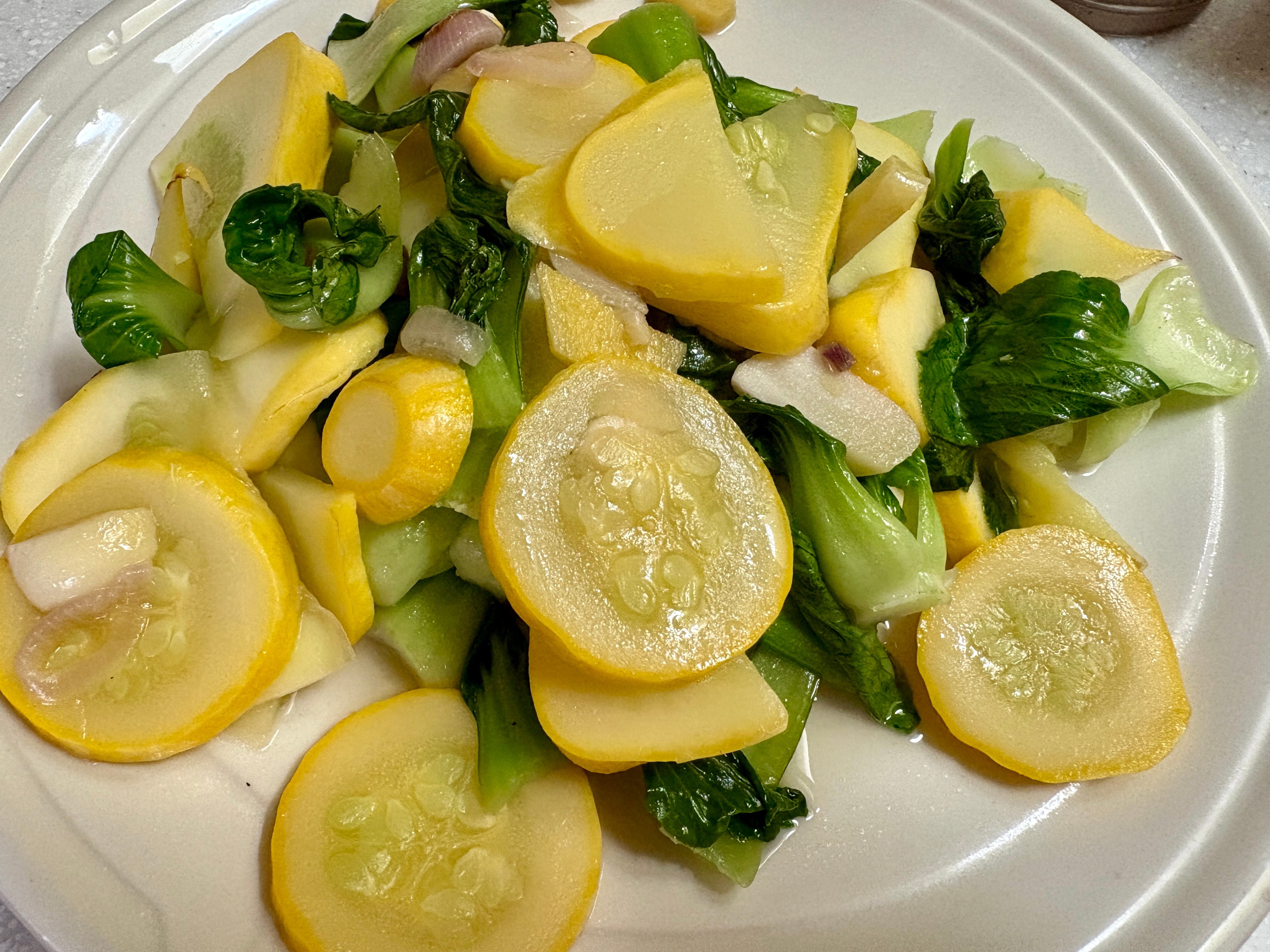 Then I added the Shanghai choy, some salt, and after a few minutes the vegetables were done.